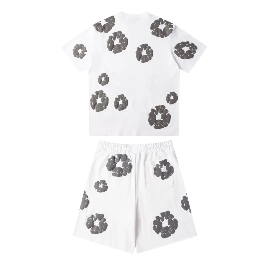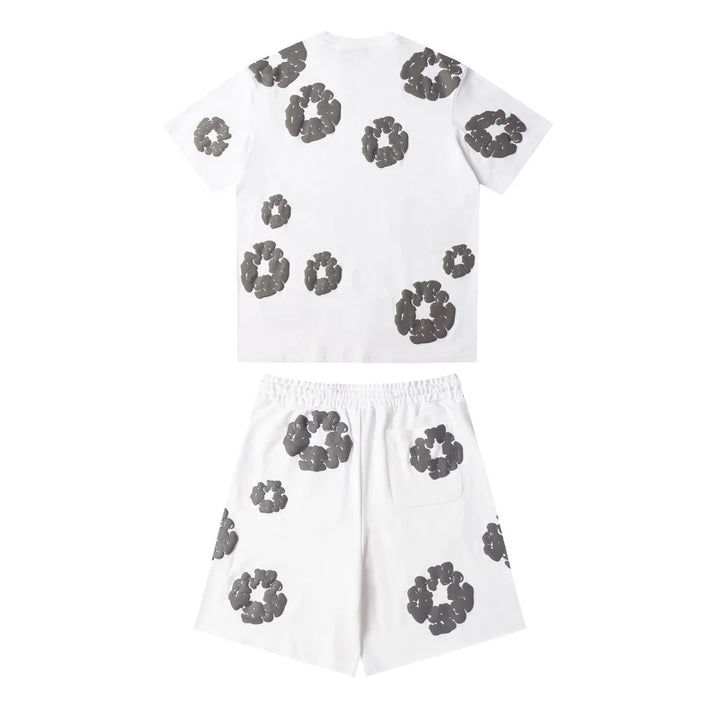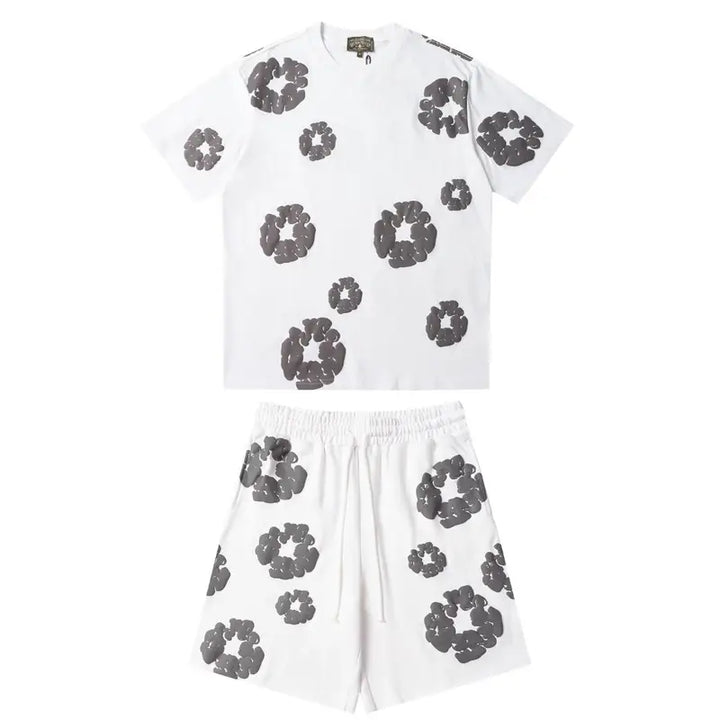 Denim Tears Stylisches Weiß-Graues Short-Set: Cooler Look für entspannte Tage